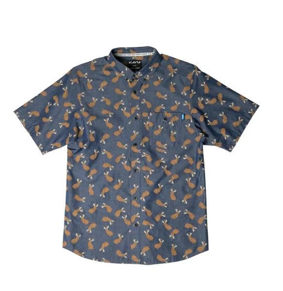 STAFF PICK! At KAVU we like to have a good time. We also like to look good. The Juan emerged from our design laboratory 4 years ago. Our beloved KAVU creatives started with a lush 4oz cotton chambray, added recycled poly faux wood buttons, and finished with a stellar pigment print. The outcome? A best selling shirt.